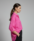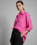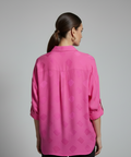 Sezonun en iddialı rengi fuşya ile tanışın! Kumaşındaki kendinden dokulu desenleri ve modern oversize kesimiyle bu gömlek, gardırobunuzun en enerjik parçası olacak. Hem rahat hem de şık görünmek isteyenler için tasarlanan bu model, gün boyu konfor sunar.