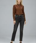 ORJİNAL MARKA KAHVE RENGİ KENDİNDEN NAKIŞLI GÖMLEK